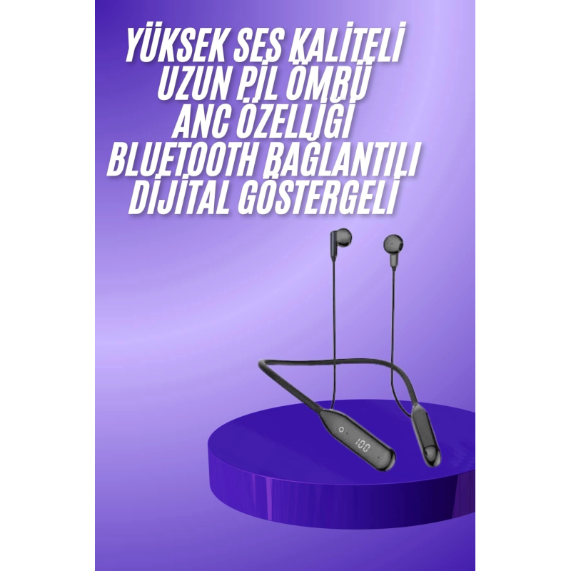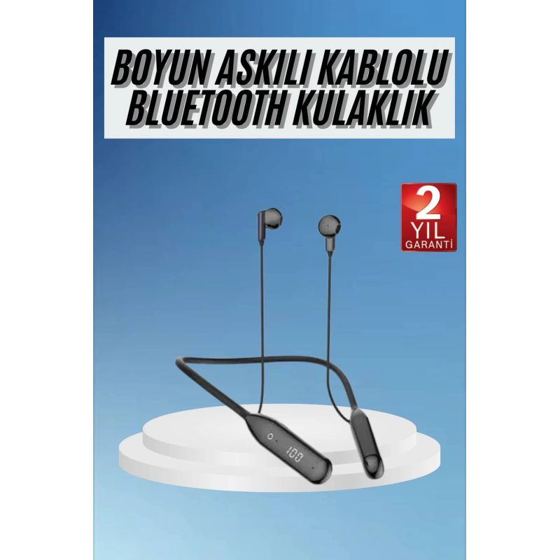 100 Saat Kablolu Boyun Askılı Dijital Göstergeli Bluetooth Kulaklığı