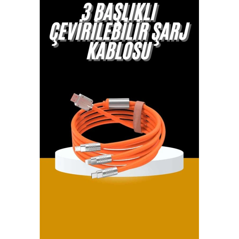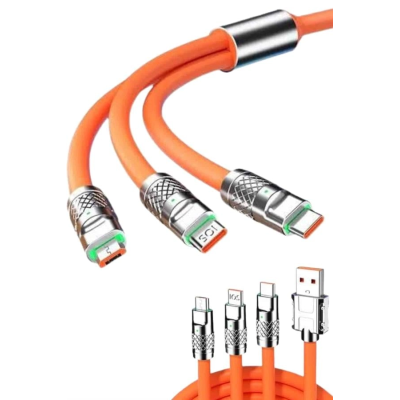 120w 3 İn 1 Uyumlu Silikon Şarj Kablosu Hızlı Şarj Kablosu