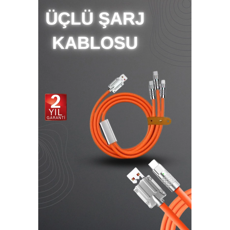 120w Hızlı Şarj Kablosu Turuncu Yüksek Güç Kapasitesi Çoklu Şarj Girişi