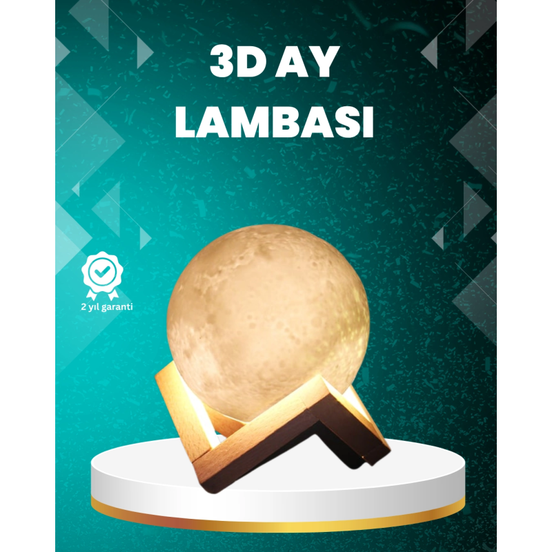 Gökyüzünün huzur veren ışığını evinize taşıyın! 3D baskı teknolojisiyle üretilen 16 renkli ay lambası, NASA’nın gerçek ay yüzeyi verilerinden alınan detaylarıyla doğal bir görünüm sunar.Lambada 16 renk seçeneği ve 4 farklı ışık modu (flash, fade, smooth, strobe) bulunur. RGB geçiş modu, renklerin yumuşak geçişlerle dans ettiği bir ambiyans yaratır. 9 kademeli parlaklık ayarı, ışık yoğunluğunu dilediğiniz gibi kişiselleştirmenize imkan tanır.Ahşap standı sayesinde masa, komodin veya raflarda zarif bir görünüm sunar. 8 saat pil ömrü ve 2 saat hızlı şarj süresi ile her zaman hazırdır.Hem çocuklar için güvenli bir gece lambası hem de yetişkinler için huzur veren dekoratif bir aydınlatmadır.