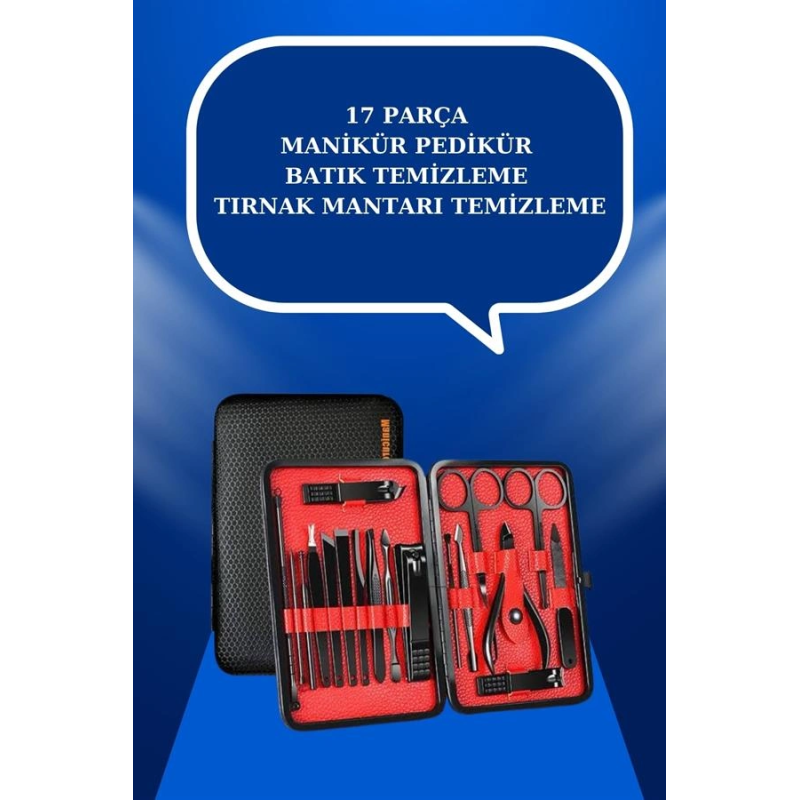 17 Parça El Ayak Bakım Seti Tırnak Temizleme Manikür Pedikür Cımbız Törpü Tırnak Makası