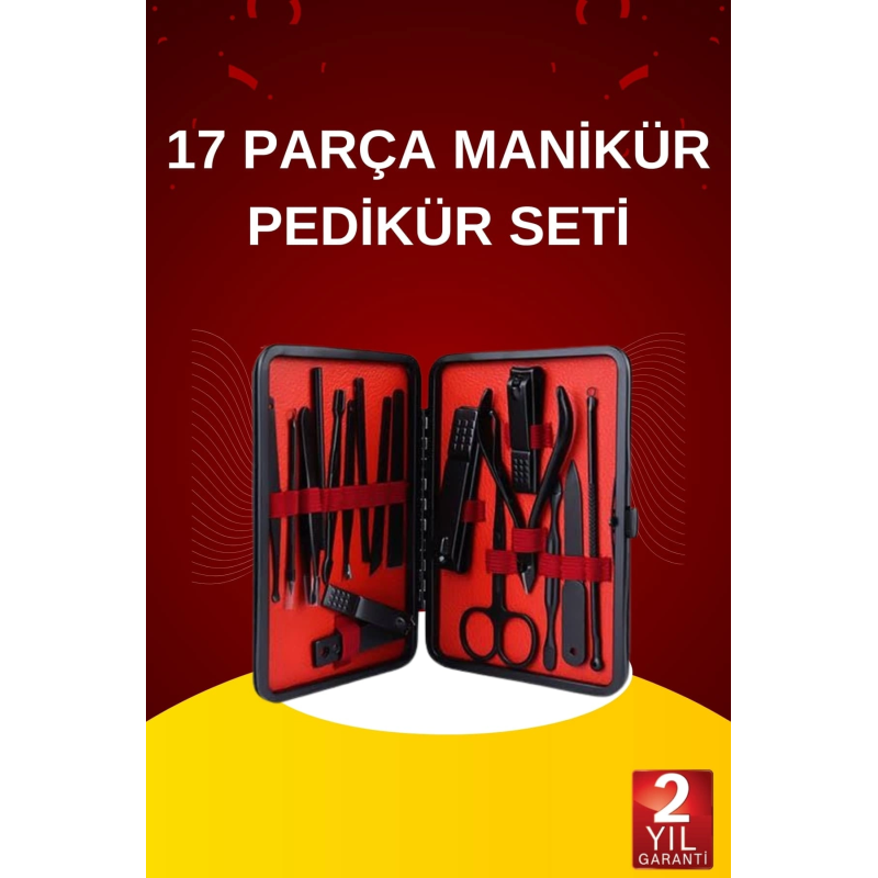 17 Parça El Ayak Bakım Seti Tırnak Temizleme Manikür Pedikür Cımbız Törpü Tırnak Makası