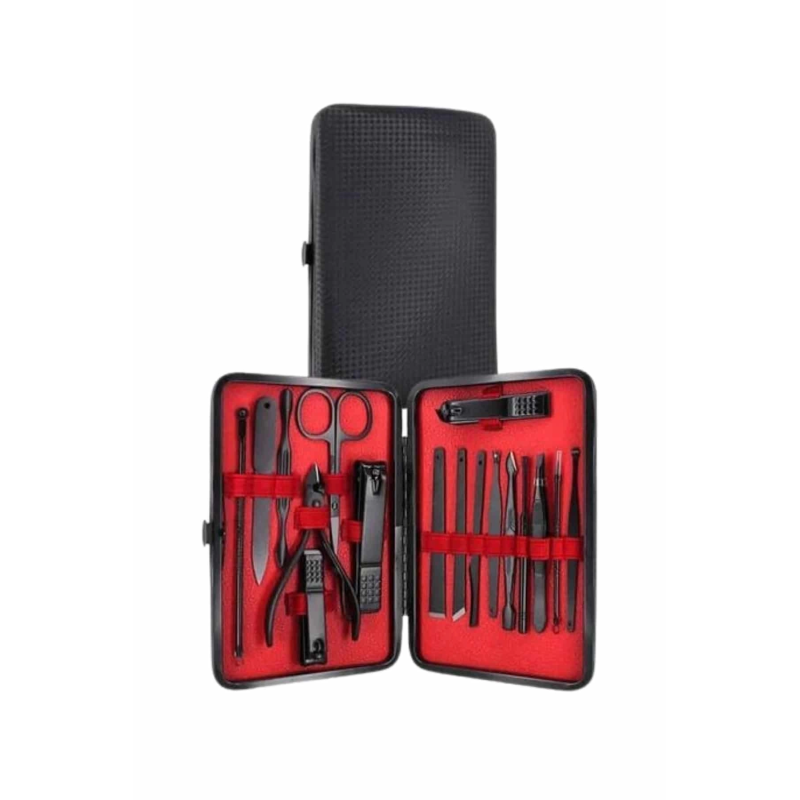 17 parça manikür pedikür seti, hem el hem de ayak bakımı için ihtiyaç duyacağınız tüm malzemeleri içerir. Paslanmaz çelikten üretilmiş olan set, dayanıklılık ve uzun ömür sağlar, ayrıca güvenli sterilizasyon olanağı sunar. Yeni nesil siyah kaymaz parlatma teknolojisi ile keskinlik artırılmış olup, es ve kullanım kolaylığı sağlar.Paslanmaz Çelik ve Yüksek Kalite:Tüm ürün parçaları, %100 paslanmaz çelikten üretilmiştir. Bu malzeme, sağlamlık ve dayanıklılık sağlar, korozyona karşı direnç gösterir ve enfeksiyon riskini minimize eder. Keskin ve düzgün kesimler yak, tırnak bakımını profesyonel seviyeye taşır.Şık ve Taşınabilir Deri Çanta:Set, şık bir deri kaplama çanta ile birlikte gelir. Fermuarla kolayca açılıp kapanabilen bu çanta, tüm aletleri düzenli tutar ve taşımasını kolaylaştırır. Hafifliği sayesinde, seti her gün çantanızda taşıyabilir veya seyahatlerde yanınıza alabilirsiniz.Kapsamlı Bakım Seti:Bu set, el ve ayak bakımının her aşamasını kolaylaştıran birçok araca sahiptir. İçeriğinde büyük ve küçük tırnak makasları, sivri uçlu tırnak makası, çift uçlu komedon, törpü, et ittirici, pedikür bıçakları ve daha birçok kullanışlı alet bulunur. Bu araçlarla tırnak bakımınızı profesyonel seviyeye çıkarabilirsiniz.Sağlık ve Temizlik:Ürünler, kolayca temizlenebilir ve sterilize edilebilir özelliklere sahiptir. Bu da hijyen açısından büyük önem taşır, çünkü enfeksiyon riskini en aza indirir. Paslanmaz çelik yapısı, uzun süreli kullanımda bile dayanıklılığını korur.Paket İçeriği: 1 adet büyük tırnak makası 1 adet küçük tırnak makası 1 adet sivri uç tırnak makası 1 adet çift uçlu komedon 1 adet törpü 1 adet et ittirici 1 adet çift taraflı tırnak kaldırma aleti 1 adet makas 1 adet pedikür bıçağı 1 adet çarpraz pedikür bıçağı 1 adet kavisli pedikür bıçağı 1 adet V şeklinde et itme 1 adet itme çubuğu 1 adet tırnak temizleme 1 adet cımbız 1 adet iğneli komedon 1 adet kulak temizlemeÖzellikler: Yüksek kaliteli paslanmaz çelik malzeme Şık ve taşıması kolay deri çanta Kolay sterilizasyon ve temizlik Tırnak bakımında profesyonel sonuçlar Seyahat dostu, taşınabilir yapı