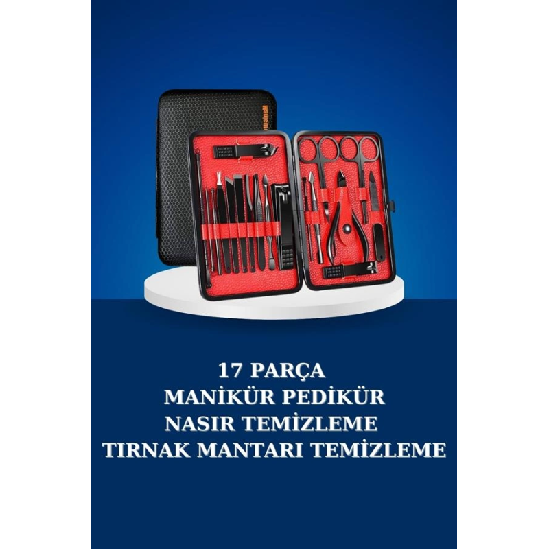 17 Parça Manikür Seti Taşınabilir Özel Çantalı El Ve Ayak Bakımı Tırnak Batığı Temizleme