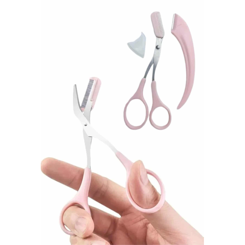2'li Kaş Bakım Seti Taraklı Kaş Makası Ve Kaş Usturası Kaş Şekillendirici