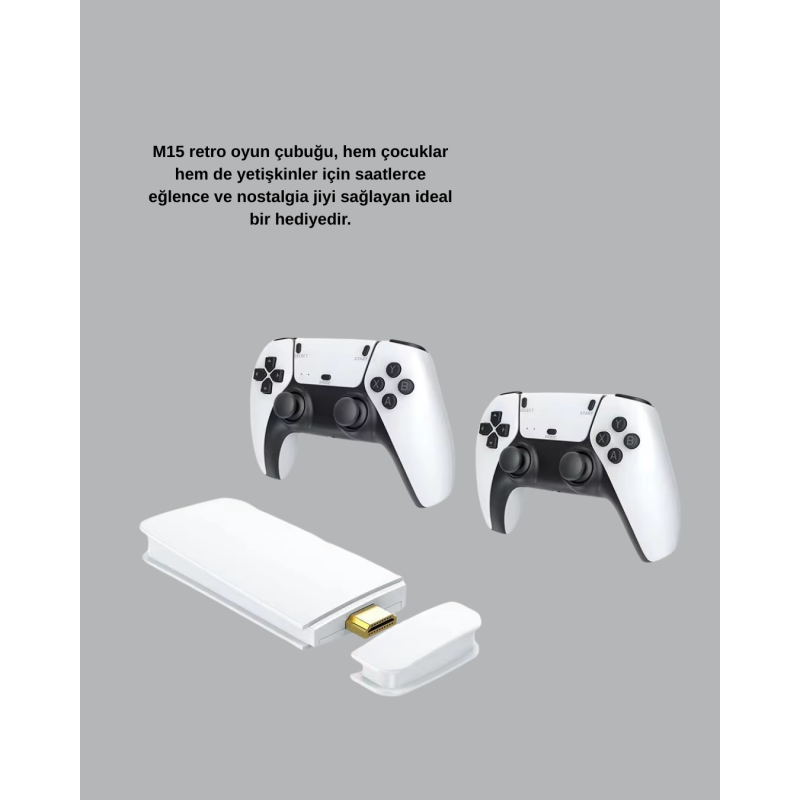 M15 retro oyun çubuğu, eski zamanların favori konsol oyunlarını modern teknolojiyle buluşturuyor. NES’ten PS1’e, SEGA’dan MAME’e kadar toplam 20 emülatör ve 20.000’den fazla oyun ile geliyor. Cihaz, TV’ye kolayca bağlanarak 4K HDMI görüntü kalitesinde oyun deneyimi sunar.Kablosuz 2.4GHz bağlantı destekli iki oyun kolu ile birlikte gelen konsol, kullanıcıya hareket özgürlüğü sağlar. Gerekli olan tek şey HDMI girişi bulunan bir ekran ve bir güç bağlantısıdır. Cihaz karmaşık kuruluma gerek duymadan çalışır.Aile içinde eğlenceli vakit geçirmek isteyenler için idealdir. Ayrıca doğum günü ya da özel günlerde, retro oyun tutkunu tanıdıklar için nostaljik ve eğlenceli bir hediye alternatifi sunar.