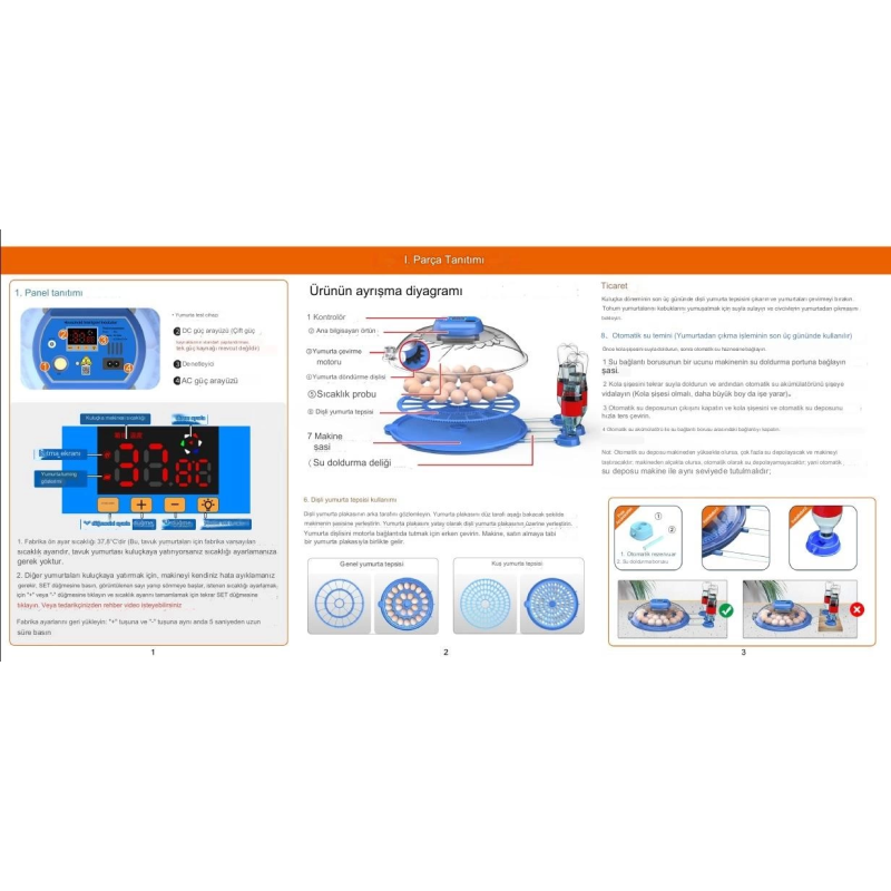 Sıcaklık ve Nem Kontrolü: Makine, istikrarlı bir sıcaklık ve nem seviyesi sağlamak için entegre bir kontrol sistemine sahiptir. Bu, yumurtaların sağlıklı bir şekilde inkübe edilmesini sağlar ve başarı oranını artırır.