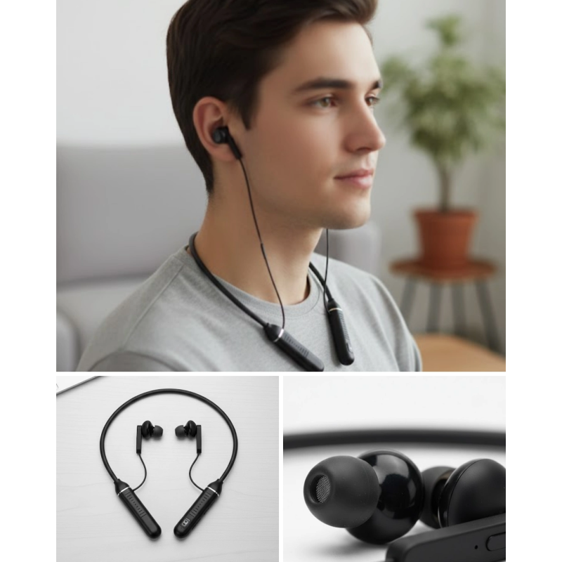 Uzun pil ömrü ve konforlu tasarımı ile öne çıkan bu kablosuz kulaklık, günlük kullanımda yüksek performans sunar. Boyun askılı yapısı sayesinde kulaklıklar sabit durur ve düşme riski oluşturmaz. Gün boyu rahat kullanım için ergonomik olarak tasarlanmıştır.Kulak içi tasarım, müziğin detaylarını daha net duymanıza yardımcı olur. Güçlü baslar ve dengeli ses çıkışı ile tatmin edici bir dinleme deneyimi sunar. Telefon görüşmelerinde net ses iletimi sağlar.Kablosuz bağlantı özelliği ile özgürce hareket edebilirsiniz. Kablo karmaşası olmadan müzik dinlemek ve arama yapmak mümkündür. Uzun pil kapasitesi, sık şarj ihtiyacını ortadan kaldırır.Dayanıklı ve hafif yapısı, uzun süreli kullanım için idealdir. Manyetik kulaklık uçları sayesinde düzenli ve pratik bir kullanım sunar. Kontrol tuşları ile müzik ve çağrı yönetimi kolayca yapılabilir.Şık tasarımı sayesinde günlük kombinlerle uyum sağlar. Spor, yürüyüş ve günlük kullanım için ideal olan bu kablosuz kulaklık, fonksiyonel özellikleri ile kullanıcı beklentilerini karşılar.