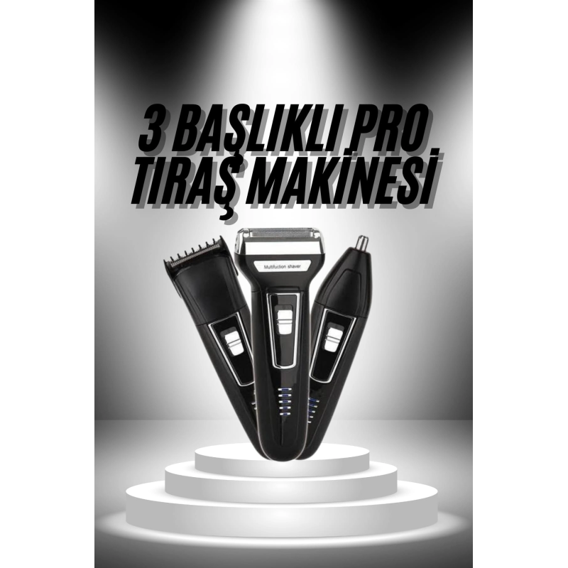 3'lü Set Saç Sakal Kesme Traş Makinesi Burun Kılı Alma Tıraş Makinesi