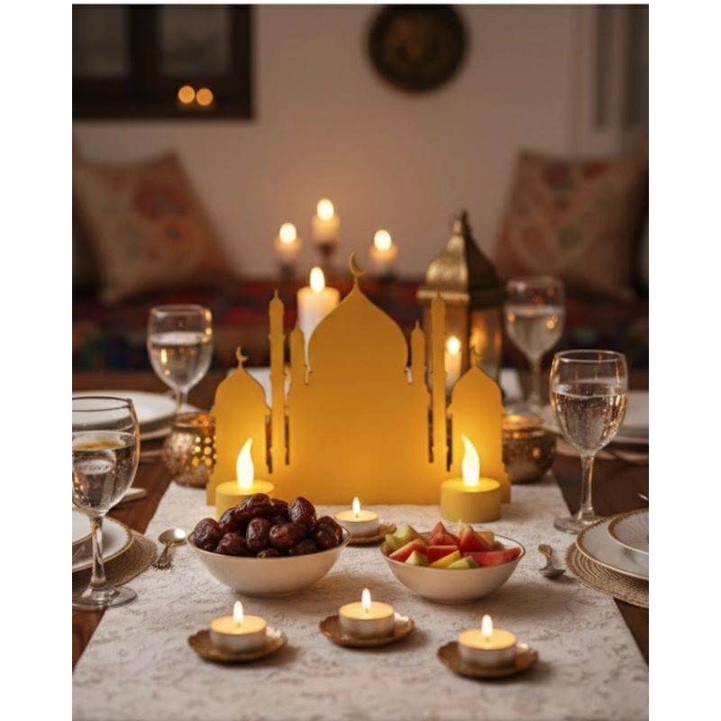 3D İki Mumlu Cami Dekor, Ramazan ayının huzurlu atmosferini evinize taşımak için tasarlanmış şık ve anlamlı bir dekoratif üründür. Ürün ile birlikte 2 adet pilli LED mum hediye olarak gönderilmektedir.LED mumlar güvenli kullanım sunar, gerçek alev içermez ve sıcak sarı ışık efekti sayesinde ortamda yumuşak bir ambiyans oluşturur. Özellikle iftar sofralarında, konsol üstünde veya TV ünitesinde etkileyici bir görünüm sağlar.Cami siluet tasarımı loş ortamda arka fonda zarif bir ışık yayarak dekorasyonunuza manevi bir dokunuş katar. Hem gündüz hem gece kullanım için idealdir.