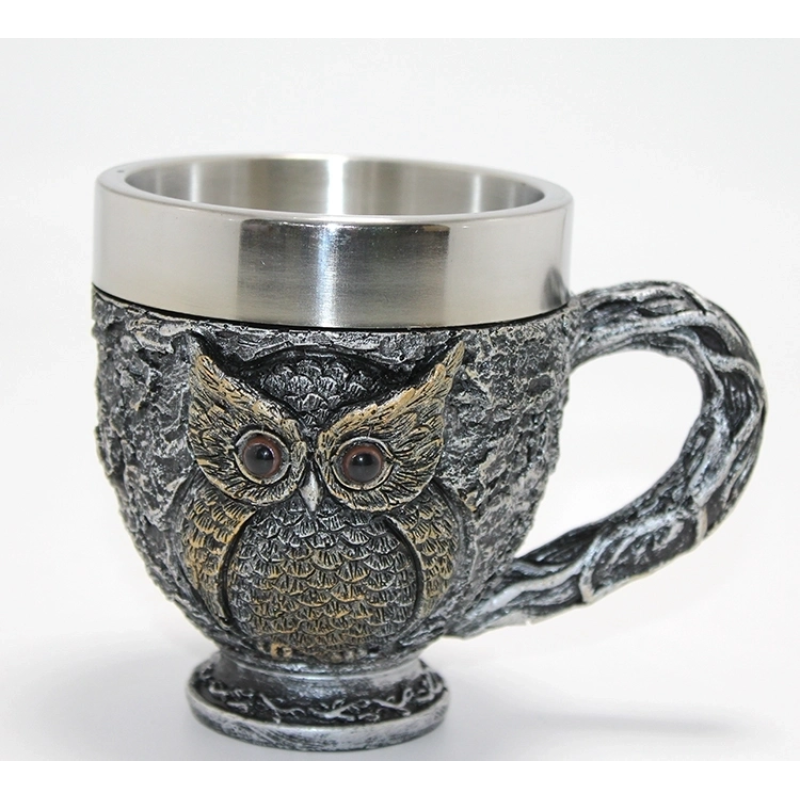 3d Kabartmalı Baykuş Büstü Paslanmaz Çelik Kupa Bardak Alk4482