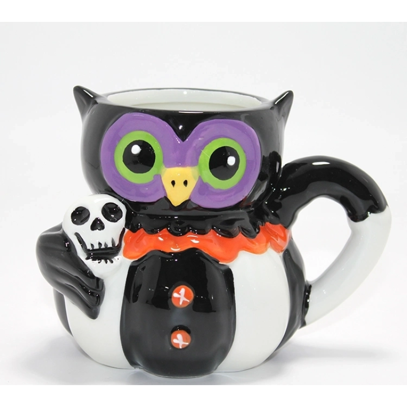 3d Kurukafa Tutan Baykuş Figürlü Seramik Kupa Bardak Alk4895