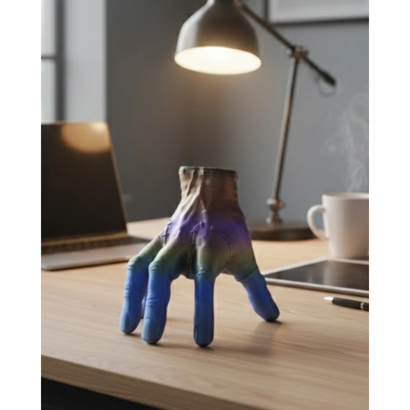 3D Tasarım Rengarenk El Biblo 27x22 cm, sıradan dekoratif ürünlerden farklı olarak güçlü ve dinamik bir görünüm sunar. Renk geçişli tasarımı ürünü eşsiz kılar.Geniş konsol ve sehpa üzerinde tek başına bile dekorasyonu tamamlayacak güce sahiptir.Ev, ofis ve konsept alanlarda rahatlıkla kullanılabilir.