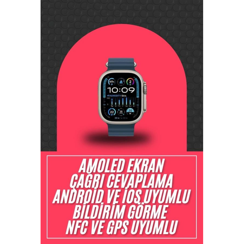 49mm Akıllı Saat Amoled Ekranlı Kadın Erkek Kol Saati Plastik Kordon