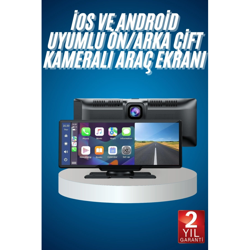 10.26 inçlik geniş ve yüksek çözünürlüklü 4K hassas dokunmatik ekranıyla sürüş keyfini yeni bir boyuta taşıyan bu kablosuz CarPlay ekran, hem konforu hem de güvenliği bir araya getiriyor. iOS ve Android cihazlarla uyumlu olan bu sistem, karmaşık kablo tesisatına ya da araç orijinalliğini bozacak işlemlere gerek kalmadan doğrudan entegre edilebilir. Sadece 12V çakmaklık soketine takılarak saniyeler içinde kullanıma hazır hale gelir; ekstra profesyonel destek gerekmeden herkesin rahatlıkla kurabileceği bir yapıya sahiptir.Cihazla birlikte gelen ön ve arka kameralar sayesinde yalnızca bir multimedya ekranı değil, aynı zamanda kapsamlı bir güvenlik çözümü de sunar. Araç içi ve dışı görüntüleri kaydeden bu sistem, olası kaza durumlarında güvenliğinizi belgelemek için büyük avantaj sağlar. Döngüsel kayıt teknolojisi sayesinde hafıza kartı dolduğunda en eski kayıtlar otomatik olarak silinir ve yeni görüntüler için yer açılır — bu da kullanıcıya zaman kazandıran pratik bir detaydır.Kablosuz CarPlay ve Android Auto desteği sayesinde haritalar, müzik uygulamaları, telefon aramaları gibi işlevlere kolayca erişebilir; aynı zamanda ekran yansıtma özelliği ile telefonunuzdaki videoları doğrudan ekranda izleyebilirsiniz. Cihaz, FM verici veya Aux çıkışı ile araç hoparlör sisteminize kolayca bağlanabilir, böylece ses kalitesinden ödün vermeden içeriklerinizin keyfini çıkarabilirsiniz.Modern araç kullanıcılarının beklentilerine yanıt veren bu CarPlay ekran, hem teknolojik hem de kullanıcı dostu yapısıyla öne çıkar. Sürüş sırasında dikkat dağıtmadan daha bilinçli kararlar almanızı sağlar, seyahatlerinizi eğlenceli ve güvenli hale getirir.