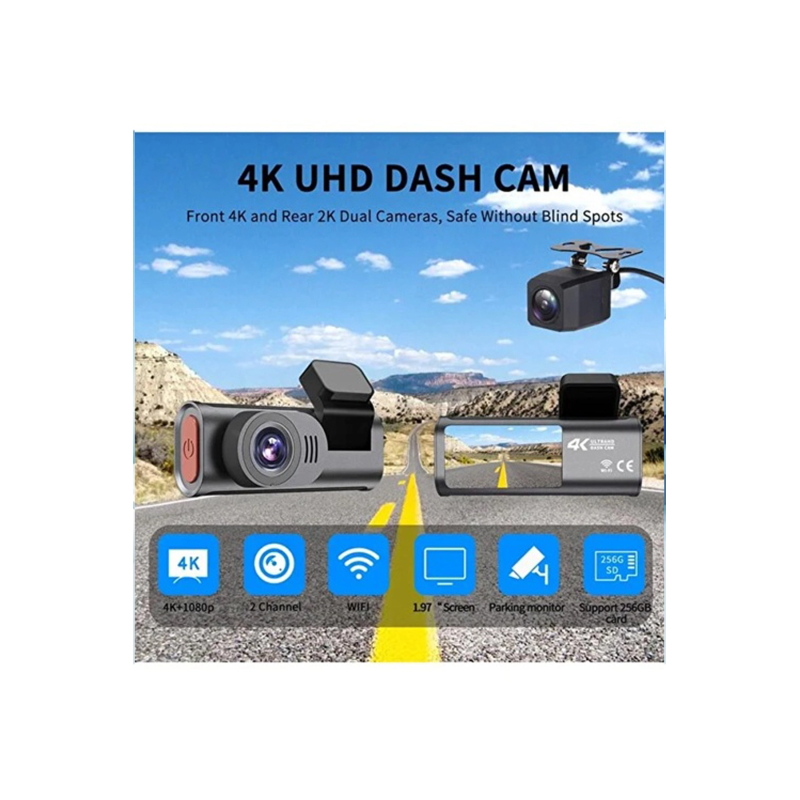4k Wifi Çift Kameralı Araç Kamerası Gece Görüşlü G-sensörlü Dash Cam 170 Derece