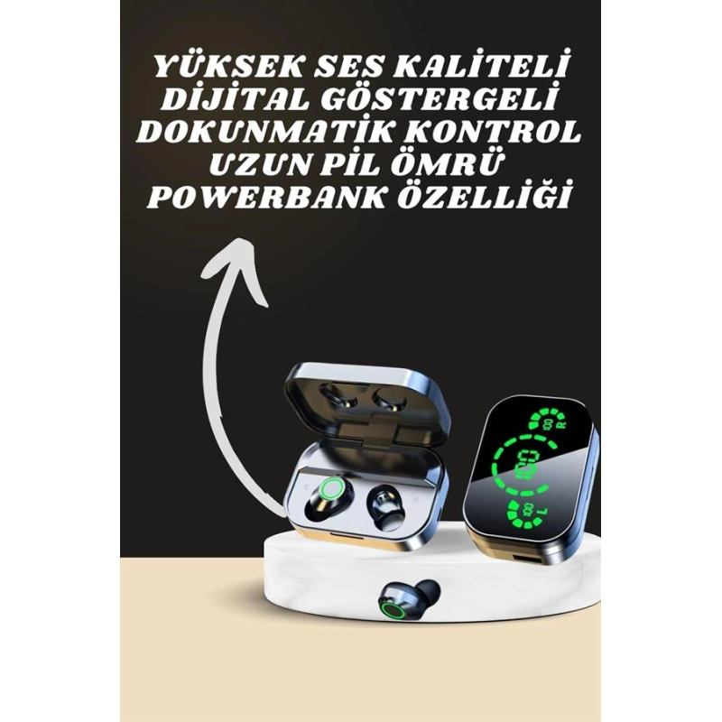 7 Kordonlu Akıllı Saat Ve Aynalı Bluetooth Kulaklık Powerbank Dijital Göstergeli
