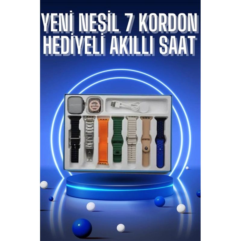 Akıllı Saat 7 Kordon Hediyeli Takvim Alarm Nabız Ölçer Bildirim Görme Sesli Görüşme
