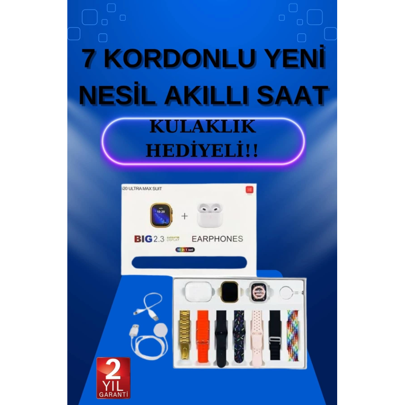 Akıllı Saat 7 Kordonlu Kulaklık Hediyeli Nabız Ölçer Uyku Takibi Sesli Görüşme