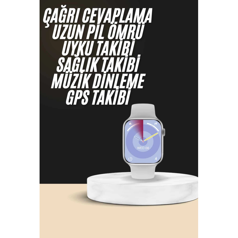 Modern tasarımı ve işlevsel özellikleriyle öne çıkan bu akıllı saat, 45 mm'lik kasa çapı ve gümüş rengiyle hem zarif hem de dikkat çekici bir görünüm sunar. Bej renkli kordonu sayesinde günlük giyim tarzınıza kolaylıkla uyum sağlar ve şıklığı bir adım öteye taşır. 300-400 mAh aralığındaki batarya kapasitesi, gün boyu aktif kullanımda dahi sizi yarı yolda bırakmazken, pratik şarj deneyimiyle zaman kazandırır.Adımsayar özelliğiyle hareketlerinizi anlık olarak takip edebilir, uyku takibi fonksiyonu ile gece boyunca uyku kalitenizi analiz edebilirsiniz. Nabız sensörü sayesinde kalp atış hızınızı gün boyunca kontrol altında tutarak daha sağlıklı bir yaşam için bilinçli adımlar atabilirsiniz. Sesli görüşme desteği, telefonunuza ihtiyaç duymadan çağrılarınızı yönetmenizi sağlarken, titreşim bildirimleri sayesinde hiçbir bildirimi kaçırmazsınız.Suya ve toza karşı dayanıklılık özelliği bulunmamakla birlikte, ofis, ev ya da sosyal alanlarda güvenle kullanabileceğiniz bir yapıya sahiptir. GPS özelliği bulunmasa da temel sağlık ve iletişim ihtiyaçlarını başarıyla karşılayan bu akıllı saat, 24 ay ithalatçı garantisi ile uzun süreli kullanım güveni sunar. Gümüş ve bej tonlarının uyumu ile es ve teknolojiyi bir araya getiren bu saat, günlük yaşamınızı hem daha organize hem de daha şık hale getirir.