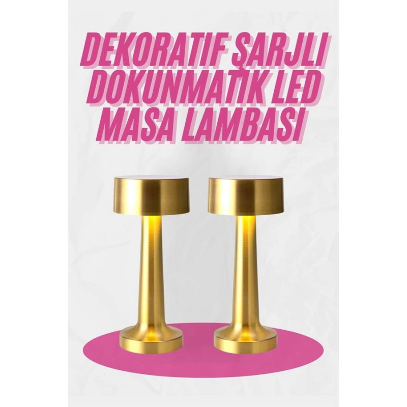 Altın Rengi Masa Ve Gece Lambası Dokunmatik Şarjlı Masa Lambası