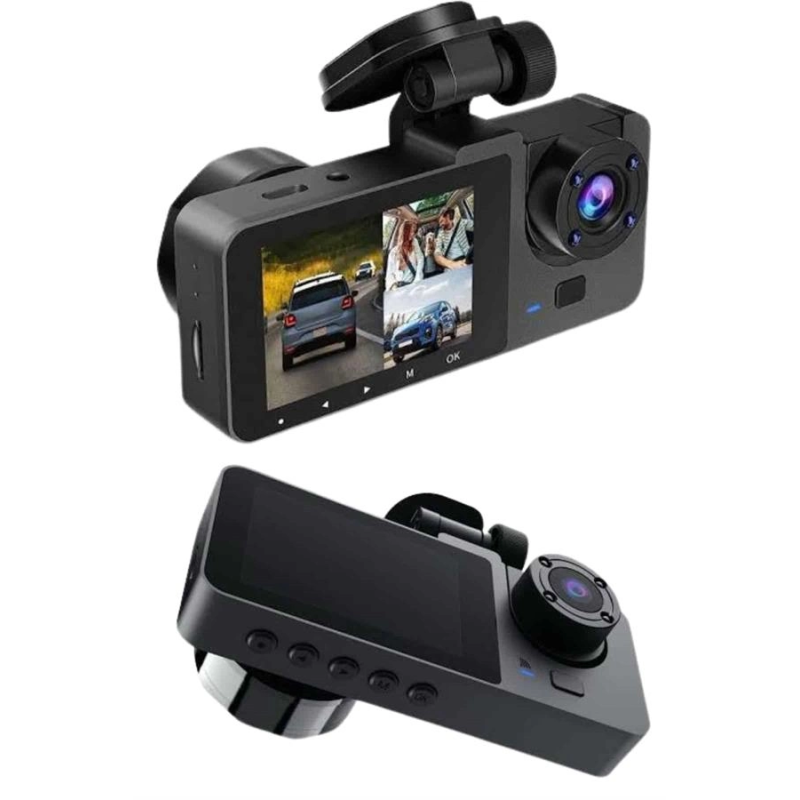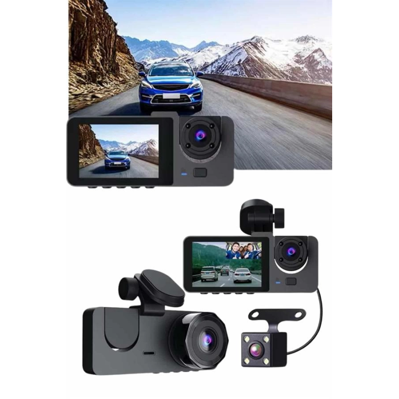 Bu çok yönlü 3 kameralı araç içi kayıt cihazı, sürüş sırasında kapsamlı güvenlik ve net görüntüleme deneyimi sunmak üzere tasarlanmıştır. 1080P Full HD ön kamerası, trafikte yaşanan tüm anları yüksek çözünürlükle kaydederken; 720P arka kamera ve VGA iç kamera ile aracın her yönünü aynı anda görüntüleme imkanı sağlar. Özellikle geniş açılı lensler sayesinde kör nokta riski en aza indirilmiş olur.Cihazın entegre G-Sensörü, ani çarpışma, sarsıntı ya da hareket anlarını otomatik olarak algılayarak ilgili görüntüleri özel olarak kaydeder ve bu önemli kayıtların üzerine yazılmasını engeller. Ayrıca park modu sayesinde, araç çalışmıyor olsa bile hareket algılandığında otomatik olarak kayıt başlatılır, böylece aracınızı her zaman güvende tutabilirsiniz.Gece görüş desteği, düşük ışıklı ortamlarda bile net ve kaliteli video kayıtları yapılmasını sağlarken, gelişmiş H.264 video sıkıştırma teknolojisi sayesinde dosyalar daha az yer kaplar, daha uzun süreli kayıtlar mümkün hale gelir. 2 inç IPS ekranı ile canlı görüntü takibi yapabilir, daha önce kaydedilen görüntülere kolayca erişebilirsiniz.170° geniş açılı ön kamerası ve 120° iç kamera açısıyla trafikte ya da park halinde hiçbir detayı kaçırmazsınız. 256 GB'a kadar Micro SD kart desteği sunan sistem, uzun kayıt süreleri için ideal bir depolama kapasitesi sağlar. Dahili 350 mAh bataryası, kısa süreli enerji kesintilerinde bile cihazın çalışmaya devam etmesini sağlar.Ergonomik tasarımı sayesinde aracın görüş açısını engellemez ve montajı oldukça kolaydır. Ön, arka ve iç mekanları aynı anda gözetleyerek hem sürücüler hem de araç sahipleri için tam kapsamlı bir güvenlik çözümü sunar. Hem şehir içi kullanımda hem de uzun yolculuklarda güvenliğinizi üst seviyeye taşır.
