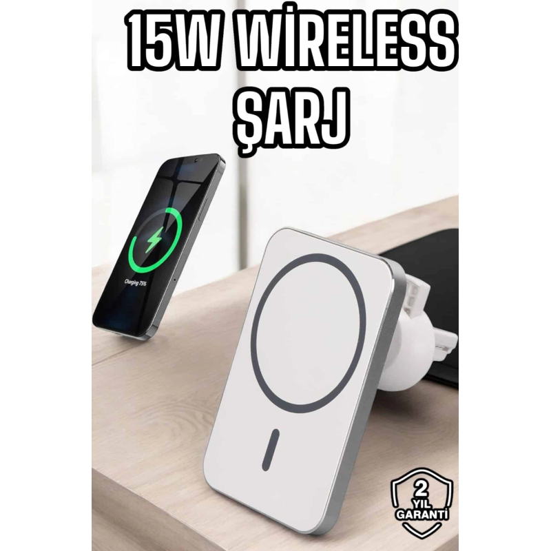 Araç Uyumlu Kablosuz 15w Taşınabilir Şarj Aleti Çift Kablo
