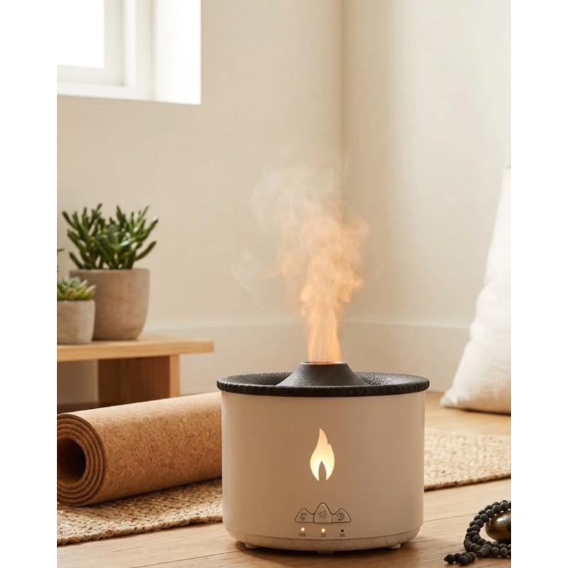 Aromaterapi Difüzörü Alev Efektli Led Işıklı Sessiz Hava Nemlendirici Otomatik Kapanma