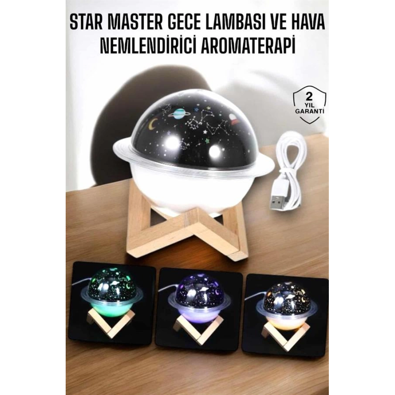 USB Projeksiyon Gece Lambası ve Hava Nemlendirici, kuru havanın zararlı etkilerini ortadan kaldırmak ve yaşam alanınızda sağlıklı bir atmosfer yaratmak için tasarlanmıştır. Bu cihaz, havayı nemlendirerek cilt kuruluğu, boğaz tahrişi gibi problemleri önler, nefes almayı kolaylaştırır ve cildinize ihtiyacı olan nemi sağlar. Şık ve zarif tasarımı, odanızın dekorasyonunu tamamlayan modern bir dokunuş sunar.Projeksiyon özelliği, cihazın sadece bir hava nemlendirici değil, aynı zamanda etkileyici bir gece lambası olarak da kullanılmasını sağlar. Odanıza huzurlu bir ambiyans sağlayan bu projeksiyon, rahatlamanıza ve stresinizi atmanıza yardımcı olur. Su haznesine ekleyebileceğiniz esans veya parfümlerle, yaşam alanınızı hoş kokularla doldurabilir ve aromaterapi etkisinden faydalanabilirsiniz. USB bağlantı özelliği, cihazın kolaylıkla taşınabilmesini ve farklı güç kaynaklarından enerji almasını sağlar.Bu nemlendirici cihaz, hem sağlığınızı destekler hem de es ihtiyaçlarınızı karşılar. Kompakt boyutları, kolay kullanımı ve fonksiyonel özellikleriyle gün boyu kaliteli hava solumanızı sağlar. Gece daha iyi bir uyku için kuru havanın zararlı etkilerini ortadan kaldırır, cildinizi korur ve yaşam alanınızı güzelleştirir.