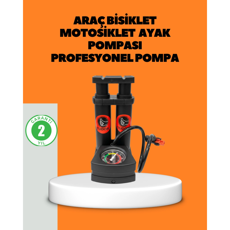 Bu ayaklı bisiklet pompası, lastiğinizin dayanabileceği maksimum basıncı aşmayacak şekilde güvenli kullanım sunar. Yüksek hassasiyetli basınç göstergesi sayesinde hava basıncını kolayca takip edebilir, kontrollü ve korumalı bir şişirme işlemi gerçekleştirebilirsiniz.Bisiklet, motosiklet, araba lastikleri, bebek arabaları, tekerlekli sandalyeler, elektrikli araçlar, şişme toplar, oyuncaklar, havuz şamandıraları ve şişme küvetler için uygundur. İç ve dış mekânda rahatlıkla kullanılabilir.Kaymaz yüzeye sahip geniş ayak pedalı, pompalama sırasında sabit durur ve enerji tasarrufu sağlayarak hızlı şişirme imkânı sunar. El pompalarına kıyasla daha az eforla daha yüksek verim sağlar.