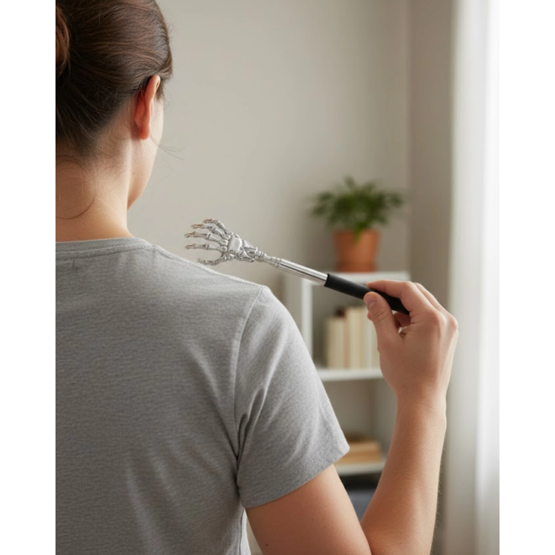 Ayarlanabilir sırt kaşıma atı, kaşıntının dayanılmaz hale gelmesini beklemeden anında müdahale etmenizi sağlar. Teleskopik kolu sayesinde istenilen uzunluğa kolayca ayarlanabilir ve sırtın her bölgesine zahmetsizce ulaşılır. Tek başına kullanım için oldukça uygundur.Figürlü uç tasarımı etkili bir kaşıma deneyimi sunarken, katlanabilir gövde yapısı ürünü daha kompakt hale getirir. Bu sayede çekmece, çanta veya bavul içerisinde rahatlıkla saklanabilir. Ergonomik yapısı sayesinde uzun süreli kullanımda bile el yorgunluğu oluşturmaz.Özellikle hareket kabiliyeti azalan kişiler için büyük kolaylık sağlayan bu ürün, günlük yaşam konforunu artırır. Pratik, taşınabilir ve kullanımı son derece kolay bir sırt kaşıma çözümüdür.