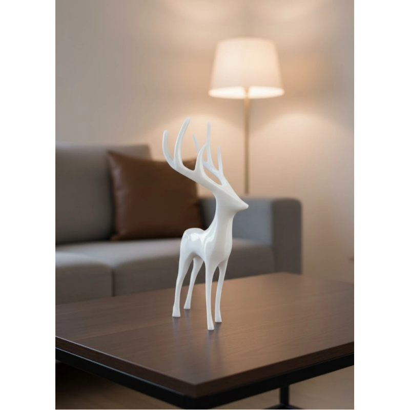 Dekoratif beyaz geyik figürü, şıklığı ve sadeliği bir araya getiren zamansız bir tasarıma sahiptir. Uzun formu sayesinde raflarda ve masa üstlerinde es bir duruş sergiler. Ev dekorasyonunda doğal, modern veya İskandinav tarzı sevenler için ideal bir aksesuardır. Tek başına güçlü bir vurgu oluşturur, diğer dekoratif objelerle birlikte kullanıldığında bütünlüklü bir görünüm sağlar.