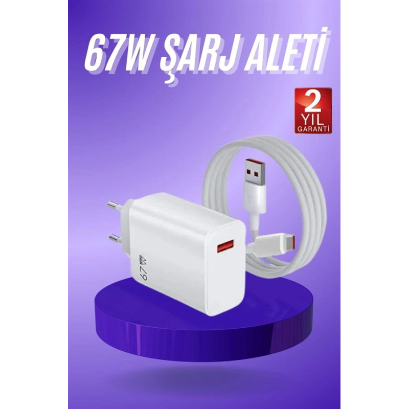 Beyaz Ultra Plus Hızlı Şarj Seti Şarj Adaptörü Ve Kablosu 67w