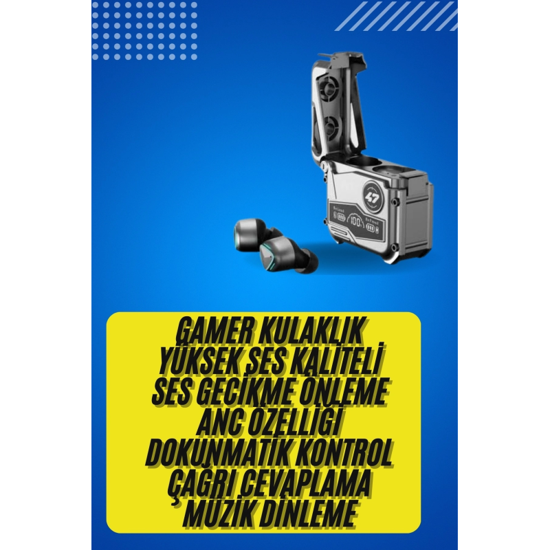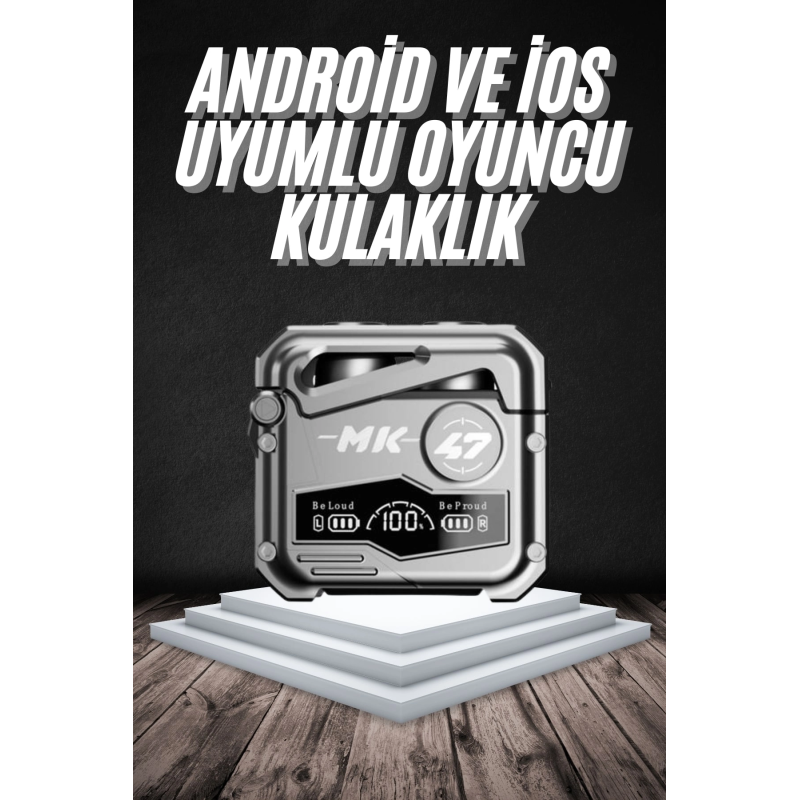 Gerçek Kablosuz ÖzgürlükMK47 Bluetooth kulaklık, dokunmatik kontrol özelliği ile kullanımı son derece kolay hale getirir. Cep telefonu oyuncuları için özel olarak optimize edilen bu kulaklık, ultra düşük gecikme süresiyle oyun deneyiminizi zirveye taşır. Kulaklıkları şarj kutusundan çıkardığınız anda otomatik olarak telefonunuzla eşleşir, böylece hiçbir anı kaçırmazsınız.Kristal Netliğinde 3D Ses ve Aktif Gürültü EngellemeTaşınabilir medya oynatıcı, mobil cihaz veya oyun konsolu ile uyumlu olan MK47, güçlü 3D ses teknolojisiyle sizi oyunun ya da müziğin tam ortasına taşır. Aktif gürültü iptali özelliği sayesinde dış ortam seslerini izole eder. Farklı boyutlarda sunulan kulak tıkaçları sayesinde kulaklığınız sabit kalır ve konforlu bir kullanım sunar – ister spor yapın ister günlük yürüyüşlerinizde kullanın.Güçlü Pil Performansı ve IPX5 Su DirenciKulaklıklar tek bir şarjla 4-5 saat kesintisiz kullanım sunar. 400mAh kapasiteli şarj kutusu ise kulaklıklarınızı birkaç kez yeniden şarj edebilir. Type-C şarj portu sayesinde hızlı ve pratik şekilde şarj olur. IPX5 su geçirmezlik derecesi ile yağmura ve tere karşı dayanıklıdır – dış mekan kullanımı için ideal bir seçenektir.
