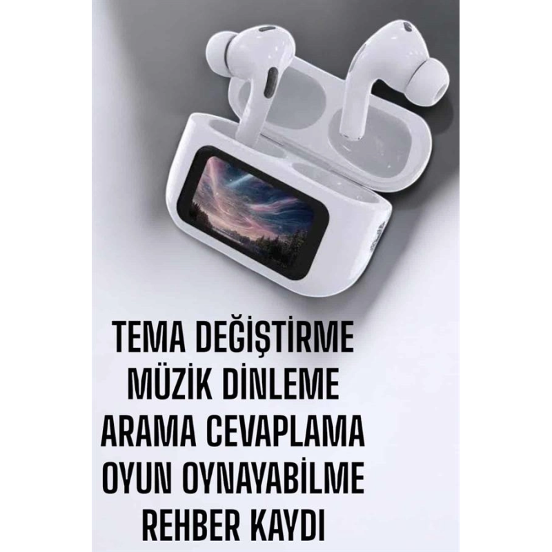 Yepyeni tasarımı, güçlü bataryası ve gelişmiş özellikleriyle bu dokunmatik ekranlı Bluetooth kulaklık, her türlü ihtiyacı karşılayacak şekilde tasarlandı. Güçlü ses ve bass performansı ile müzik deneyiminizi bir üst seviyeye taşırken, aktif gürültü önleme (ANC) özelliği sayesinde dış dünya ile bağlantınızı keserek müziğinize odaklanmanızı sağlar. Kulaklık, suya ve tere karşı dayanıklı yapısı sayesinde spor yaparken veya yağmurlu havalarda kesintisiz bir müzik keyfi sunar.Otomatik pop-up ve pop-up ekranı özellikleri, cihazınızı takar takmaz hızlı bir şekilde bağlanmanızı sağlar. Tüm akıllı telefonlarla uyumlu olan bu kulaklık, otomatik bağlantı özelliğiyle bir kez bağlandığında, bir sonraki kullanımınızda otomatik olarak eşleşir. Ayrıca, kulakiçi sensörler sayesinde kulaklıklarınızı çıkardığınızda müzik otomatik olarak durur, tekrar taktığınızda ise kaldığınız yerden devam eder.Hi Siri özelliği sayesinde kulaklıklarınızla sesli komutlarla işlem yapabilir, müzik paylaşma özelliği ile arkadaşlarınızla müzik dinlemeyi daha keyifli hale getirebilirsiniz. Ayrıca, konum bulma ve arka plan seslerini yönetme gibi özellikler de günlük kullanımda büyük kolaylık sağlar. Kulaklık kutusu, aynı zamanda powerbank olarak kullanılabilir, böylece müzik dinlerken veya telefonunuzu şarj ederken kesintisiz kullanım deneyimi yaşarsınız.