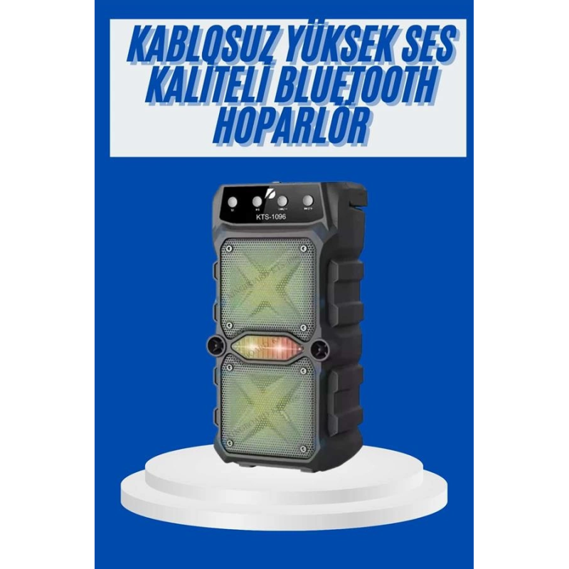 KTS 1096 büyük boy çift çıkışlı Bluetooth hoparlör, yüksek ses kalitesi ve taşınabilir yapısıyla açık hava etkinliklerinden ev ortamlarına kadar her alanda mükemmel bir performans sunar. Güçlü çift hoparlör çıkışı, net tizler ve derin baslarla etkileyici bir ses deneyimi sağlar. Geniş alanlara rahatlıkla ses yayabilir, böylece müzik keyfini kalabalık gruplarla bile paylaşabilirsiniz.5 saate kadar kesintisiz oynatma süresi ile uzun süreli eğlencelerinizde sizi yarı yolda bırakmaz. Bu süre boyunca sevdiğiniz şarkıların tadını doyasıya çıkarabilir, gün boyu kesintisiz ritmin içinde kalabilirsiniz. Bluetooth bağlantı özelliği sayesinde kablosuz kullanım rahatlığı sunar; cihazlar arası kolay eşleşme sağlar ve kablo derdi olmadan dilediğiniz yerden müzik kontrolü imkânı tanır.Kompakt ve şık tasarımı sayesinde hem kullanımı kolay hem de taşıması pratiktir. Taşınabilir yapısıyla seyahatlerinizde, kamp alanlarında veya plajda her zaman yanınızda taşıyabilirsiniz. Aynı zamanda modern ve güçlü görünümüyle bulunduğu ortama dinamizm katar.KTS 1096, yüksek performanslı çift çıkışı, uzun pil ömrü ve kablosuz özgürlüğüyle müzik keyfini üst seviyeye taşımak isteyenler için ideal bir seçimdir. Hem günlük kullanım hem de özel anlar için güçlü ve pratik bir ses çözümüdür.