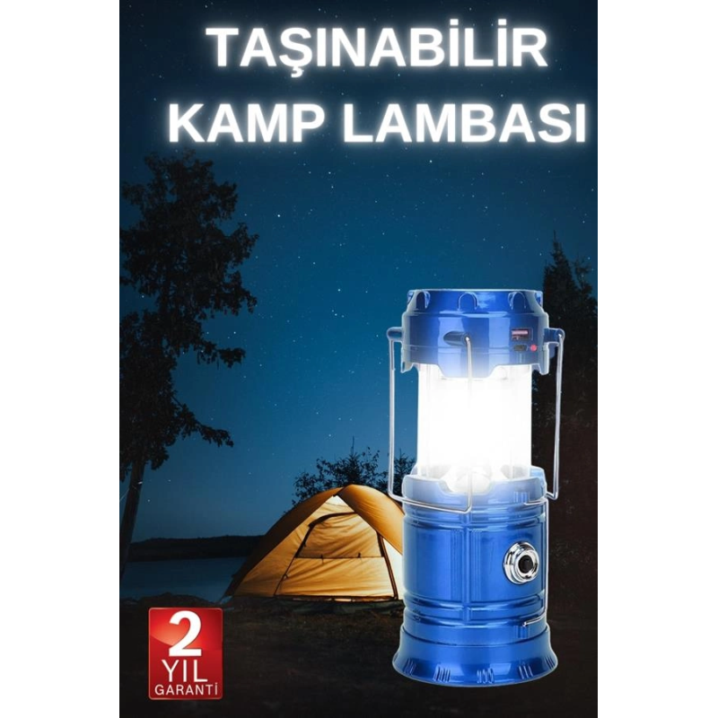Büyük Boy Güneş Enerjili Kamp Feneri Işıldak Lamba Usb Şarjlı