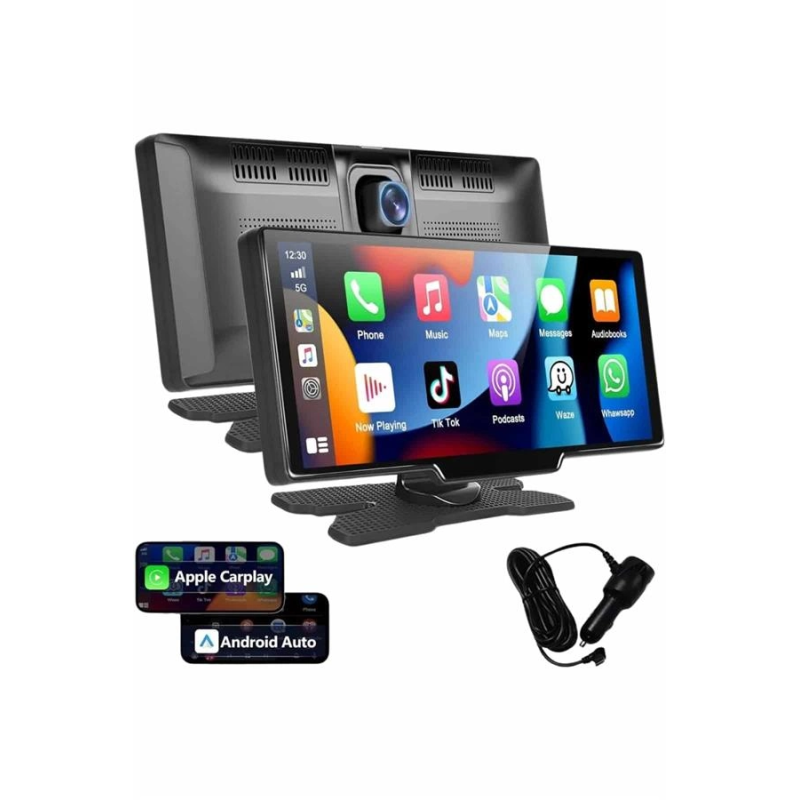 Geniş 10.26 inç 4K hassas dokunmatik ekranıyla donatılmış bu kablosuz CarPlay ekran, sürüş deneyiminizi modern teknolojinin konforuyla buluşturur. iOS ve Android cihazlarla tamamen uyumlu olan sistem, aracınızın iç aksamına müdahale etmeden, yalnızca 12V çakmaklık soketi aracılığıyla saniyeler içinde kurulabilir. Böylece ekstra teknik bilgiye ya da profesyonel desteğe ihtiyaç duymadan, aracınıza ileri seviye bir multimedya sistemi kazandırabilirsiniz.Kablosuz CarPlay ve Android Auto entegrasyonu sayesinde yolculuklarınız daha keyifli ve bağlantılı hale gelir. Google Haritalar, iOS Haritalar gibi navigasyon uygulamalarını büyük ekranda rahatlıkla kullanabilir, telefon görüşmelerinizi Bluetooth üzerinden gerçekleştirebilir ve müzik, video gibi içeriklerinizi FM verici veya AUX bağlantısı aracılığıyla aracınızın ses sistemine aktarabilirsiniz. Ayrıca ekran yansıtma özelliğiyle telefonunuzdaki videoları doğrudan cihaz ekranına taşıyabilir, film ve dizi keyfini yolculuklarınızda da sürdürebilirsiniz.Cihaza entegre olarak gelen ön ve arka kameralar, sadece eğlence değil aynı zamanda güvenlik sunar. Yolculuk sırasında gerçekleşebilecek olayları kaydeden bu sistem, olası bir durumda delil sunmanıza yardımcı olur. Döngüsel kayıt özelliği sayesinde SD kart dolduğunda en eski kayıtlar otomatik olarak silinir ve yeni görüntüler için yer açılır — böylece hafıza yönetimiyle vakit kaybetmenize gerek kalmaz.Her marka ve model araçla uyumlu olan bu CarPlay ekran, sürüş güvenliğini ve eğlenceyi bir araya getiren, kullanıcı dostu bir teknolojik çözümdür. Aracınızı modernleştirmenin en kolay ve etkili yollarından biri olarak öne çıkar.