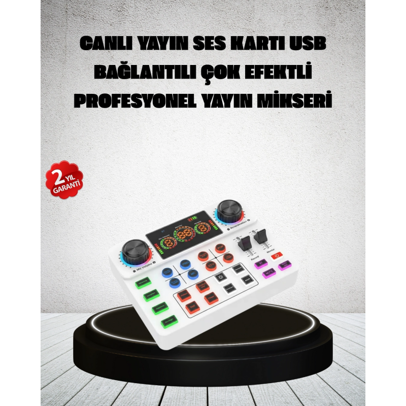 Canlı yayınlarınızı ve karaoke performanslarınızı bir üst seviyeye taşımak için tasarlanan bu profesyonel canlı yayın ses kartı, kompakt yapısına rağmen güçlü ve kapsamlı özellikler sunar. Ev ortamında, stüdyo kurulumlarında veya mobil yayınlarda kullanılabilecek şekilde geliştirilen bu cihaz, hem yeni başlayanlar hem de deneyimli içerik üreticileri için ideal bir çözümdür.Gelişmiş ses işleme teknolojisi sayesinde sesler daha net, dengeli ve canlı bir şekilde aktarılır. Gürültü engelleme özelliği, arka plandaki istenmeyen sesleri minimize ederek yayınlarınızda temiz ve anlaşılır bir ses deneyimi sağlar. Bu özellik özellikle canlı yayın, podcast ve karaoke kullanımlarında büyük avantaj sunar.Bluetooth bağlantı desteği sayesinde kablosuz müzik eşliği kolayca eklenebilir. Telefon veya diğer uyumlu cihazlar ile bağlantı kurularak yayınlarınıza arka plan müziği entegre edilebilir. Tak-çalıştır özelliği sayesinde karmaşık kurulumlara ihtiyaç duyulmaz, cihaz kısa sürede kullanıma hazır hale gelir.Üzerinde bulunan bağımsız ses kontrol düğmeleri sayesinde mikrofon sesi, yankı seviyesi ve eşlik müziği ayrı ayrı ayarlanabilir. Böylece ses üzerinde tam kontrol sağlanır. Hazır efekt tuşları ile alkış, gülme, sunum efektleri ve çeşitli ambiyans sesleri tek tuşla yayınlara eklenebilir.Canlı yayın, karaoke, sosyal medya içerikleri, online eğitimler ve podcast çalışmaları için çok yönlü bir ses çözümü sunar. Profesyonel yayın kalitesini ev ortamına taşımak isteyen herkes için güçlü ve pratik bir ses kartıdır.