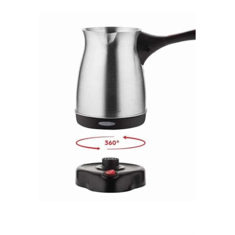 Yüksek performansı ve pratik özellikleriyle öne çıkan bu elektrikli cezve, 800 watt gücü sayesinde mükemmel Türk kahvesi pişirir. 300 ml kapasitesiyle 6 fincana kadar kahve hazırlayabilirsiniz, böylece misafirlerinize ya da kendinize hızlıca lezzetli bir kahve sunabilirsiniz. Gizli rezistans teknolojisi, güvenli ve verimli bir ısıtma sağlar, aynı zamanda temizlik açısından büyük kolaylık sunar.360 derece dönebilir kablosuz tabanı, kullanım sırasında esneklik ve rahatlık sağlar. Bu özellik, cezvenin mutfakta her açıdan rahatça kullanılabilmesini mümkün kılar. Paslanmaz çelikten üretilmiş gövdesi, uzun ömürlü ve dayanıklı olmasının yanı sıra şık bir görünüm sunar. Kolayca temizlenebilen yapısı, hijyenik kullanım olanağı tanır ve kahve hazırlarken temizlik derdini ortadan kaldırır.Cezvenin üzerinde yer alan kırmızı güç düğmesi, açma ve kapama işlemlerini kolaylaştırır. Ergonomik, ısınmayan kulpu ise güvenli bir kullanım deneyimi sağlar. Paslanmaz çelik yapısı, hem dayanıklılığı hem de modern görünümüyle mutfağınıza zarif bir dokunuş katar.Bu elektrikli cezve, Türk kahvesi severler için mükemmel bir seçenek olup, hem lezzetli kahveler hazırlamanızı hem de mutfakta şıklık yaratmanızı sağlar. Hem fonksiyonel hem de es açıdan kullanışlı bir cihazdır.