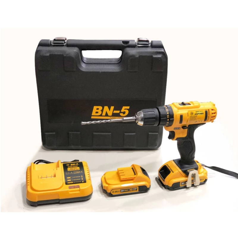 Çift Akülü Matkap Vidalama Seti Banco BN-5Yedek aküsü ile uzun süre kullanabileceğiniz Li-ion bataryalı Banco Şarjlı Vidalama seti ile tamir işleriniz çok daha kolay.24V 5 Ah Çift Akülü Matkap Vidalama Seti ÖzellikleriSürekli kullanılmaya uygun olarak üretilmiştir2 Kademeli Manuel hız özelliğine sahiptirDevir Ayar özelliğine sahiptirSağ ve sol dönüş özelliğine sahiptirAnahtarsız ( otomatik ) mandrenlidir18 Hız ayarlı tork özelliğine sahiptirElektrik fren sistemine sahiptir. Akülü Matkap İçerisinde Bulunanlar1 Adet Alman Vidalama Makinası2 adet 5 Amper Batarya1 Adet Şarj Cihazı1 Adet tekli yıldız vidalama ucuÖzel Taşıma çantası Teknik ÖzelliklerKapasite: Çelik: 20mm – Ahşap: 36mmBoşta devir: 0-350/1.350 d/dkMaksimum tork: 14/24 N.mNet ağırlık: 1.7 kgGüç kapasite: 24V/2 x 4Ah/Li-ionMandren: 1/2′