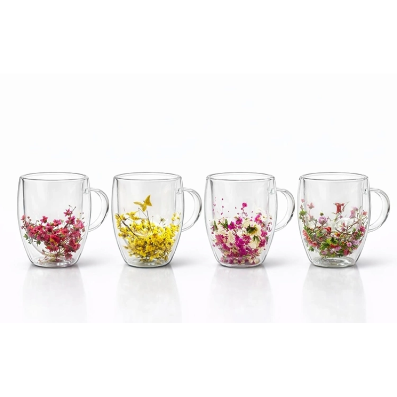Çift Camlı Çiçekli Kupa Bardak Alk4472