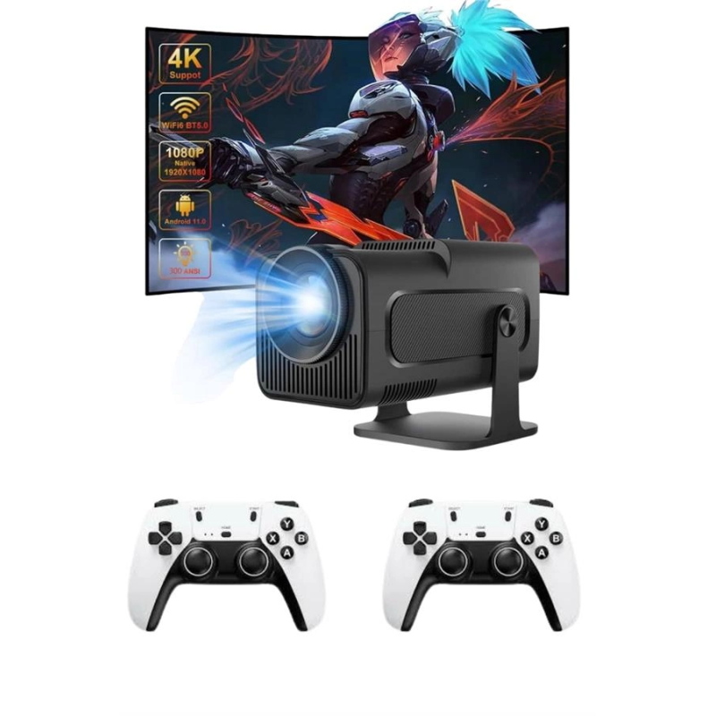Çift Kollu Game Box Projeksiyon Cihazı Kumandalı Android Tv Dahili Hoparlör