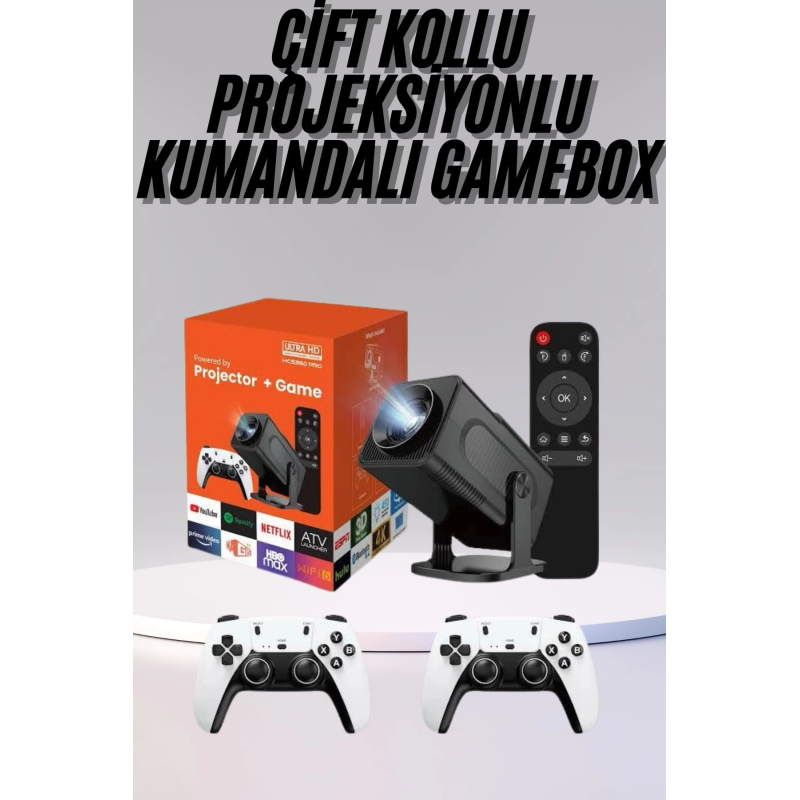 Çift Kollu Game Box Projeksiyon Cihazı Kumandalı Android Tv Dahili Hoparlör