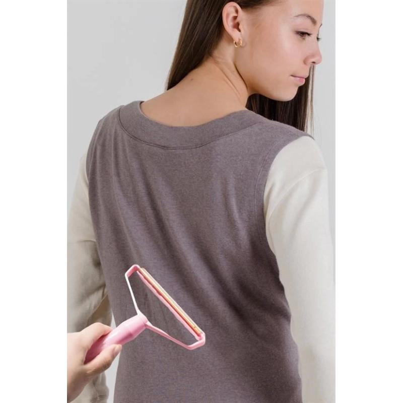 Çift taraflı başlığıyla kazak ve elbiselerinizde zamanla oluşan tiftik ve tüyleri toplamanızı kolaylaştırır