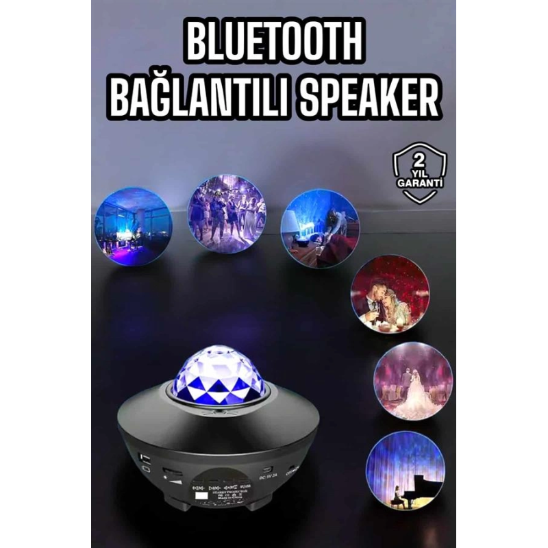 Çocuklara Özel Şarjlı Bluetooth Hoparlör Parti Led Lambası Yıldızlı Projeksiyon