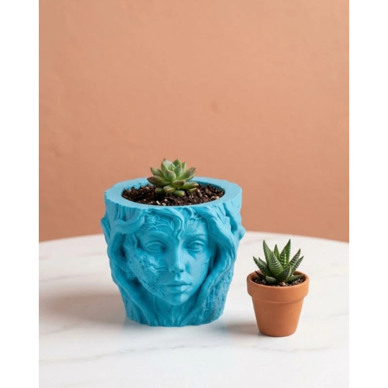 Dekoratif 3D kadın yüzü ağaç tasarımlı vazo, modern ev dekorasyonuna sanatsal bir dokunuş katmak isteyenler için tasarlanmış es bir dekor ürünüdür. Heykel formunda tasarlanan bu özel vazo, kadın yüzü figürü ile doğa temalı ağaç dokusunu bir araya getirerek oldukça dikkat çekici ve farklı bir tasarım sunar. Ev, ofis veya çalışma alanlarında dekoratif obje olarak kullanılabilen bu ürün, bulunduğu ortama sanatsal ve modern bir atmosfer kazandırır.3D baskı teknolojisi kullanılarak üretilen bu dekoratif vazo, detaylı yüz hatları ve doğal ağaç dokusunu andıran tasarımıyla oldukça etkileyici bir görünüme sahiptir. Kadın yüzünün bir kısmının ağaç dokusuna dönüşmüş gibi tasarlanması ürüne hem mistik hem de sanatsal bir karakter kazandırır. Bu tasarım sayesinde ürün yalnızca bir vazo veya saksı değil, aynı zamanda dekoratif bir sanat objesi olarak da kullanılabilir.Dekoratif 3D kadın yüzü vazo, küçük bitkiler, sukulentler veya kaktüsler için ideal bir kullanım alanı sunar. Aynı zamanda içi boş yapısı sayesinde kalemlik, masa dekoru veya raf süsü olarak da tercih edilebilir. Modern ev dekorasyonlarında, minimalist salon düzenlerinde veya sanatsal çalışma ortamlarında oldukça şık bir görünüm oluşturur.Bu dekoratif saksı vazo özellikle salon rafları, kitaplıklar, çalışma masaları, televizyon ünitesi veya sehpa üzerinde es bir tamamlayıcı obje olarak kullanılabilir. Minimalist, modern, bohem ve sanatsal dekorasyon stilleriyle uyum sağlayan tasarımı sayesinde pek çok farklı dekor konseptine kolaylıkla uyum sağlar.Aynı zamanda dekoratif hediye arayanlar için de oldukça özel bir alternatiftir. Ev hediyesi, yeni ev hediyesi, ofis hediyesi veya sanat severlere verilebilecek anlamlı bir dekoratif ürün olarak tercih edilebilir.Dekoratif 3D kadın yüzü ağaç tasarımlı vazo, hem es görünümü hem de çok amaçlı kullanım imkanıyla ev dekorasyonunda fark yaratmak isteyenler için ideal bir dekoratif aksesuardır. Modern tasarım anlayışını sanatsal detaylarla birleştiren bu ürün, bulunduğu ortamda dikkat çeken şık bir dekoratif obje olarak öne çıkar.