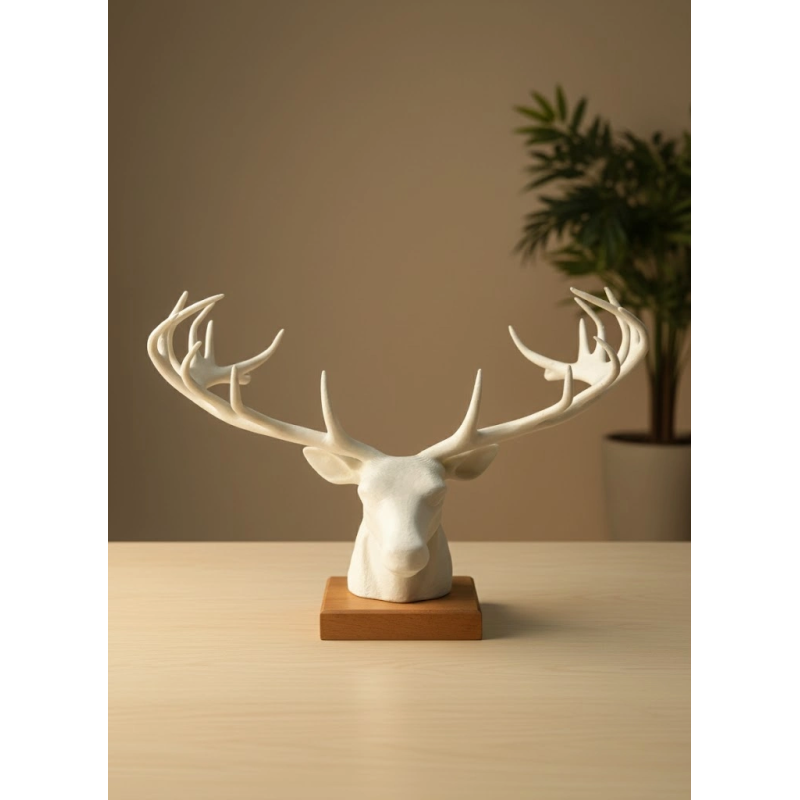 25 cm genişliğe sahip bu dekoratif geyik başı heykel, modern ve minimalist çizgileriyle yaşam alanlarınıza es bir dokunuş katar. Pürüzsüz yüzeyi, zarif boynuz yapısı ve dengeli formu sayesinde hem salon, ofis, yatak odası hem de çalışma alanlarında şık bir atmosfer oluşturur. Ürün, yüksek kalite malzemeden üretilmiş olup uzun süre formunu korur ve renk solması yapmaz. Fotoğraf çekimlerinde arka plan objesi, vitrin dekorasyonu veya masa üzerinde sanat eseri etkisi yaratmak için idealdir. Yumuşak ve doğal tonlardaki dekorlarla mükemmel uyum sağlar, mekanınıza sıcak ve dengeli bir karakter kazandırır.