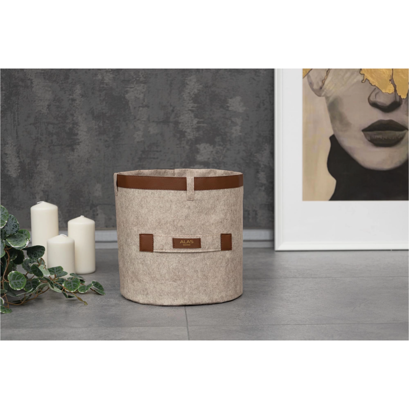 Deri Şeritli Yuvarlak Çok Amaçlı Düzenleyici Organizer Kutu Keçe Sepet (mini) 03822