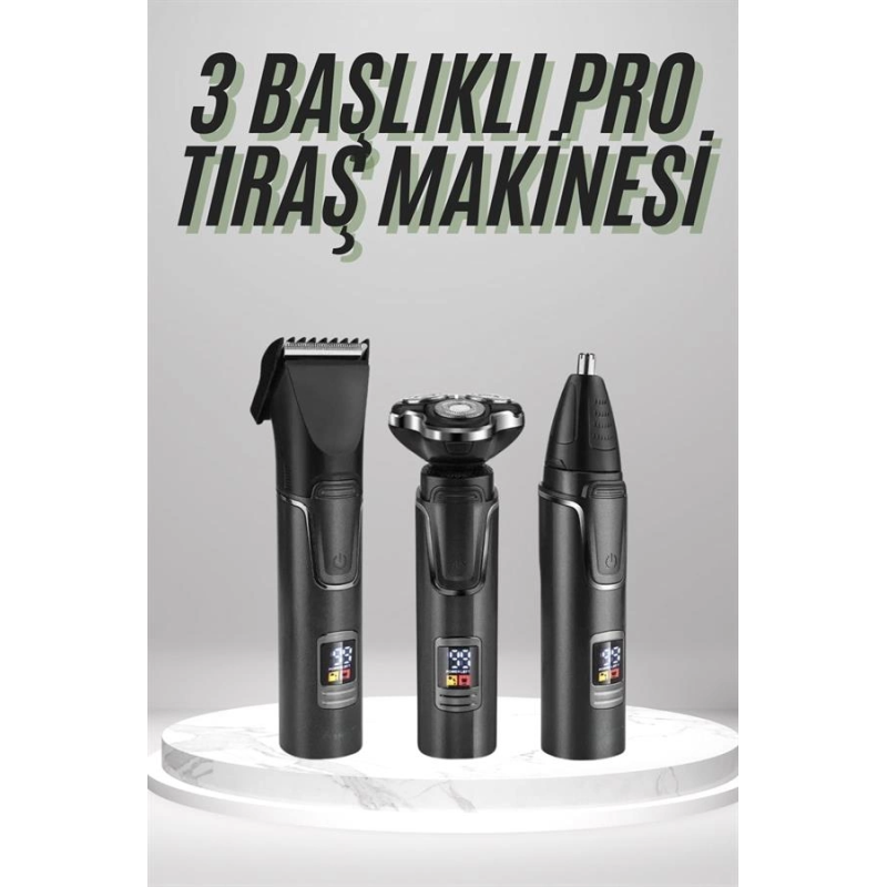 Dijital Göstergeli 3 Başlıklı Tıraş Makinesi Islak Kuru Lazer Öncesi Günlük